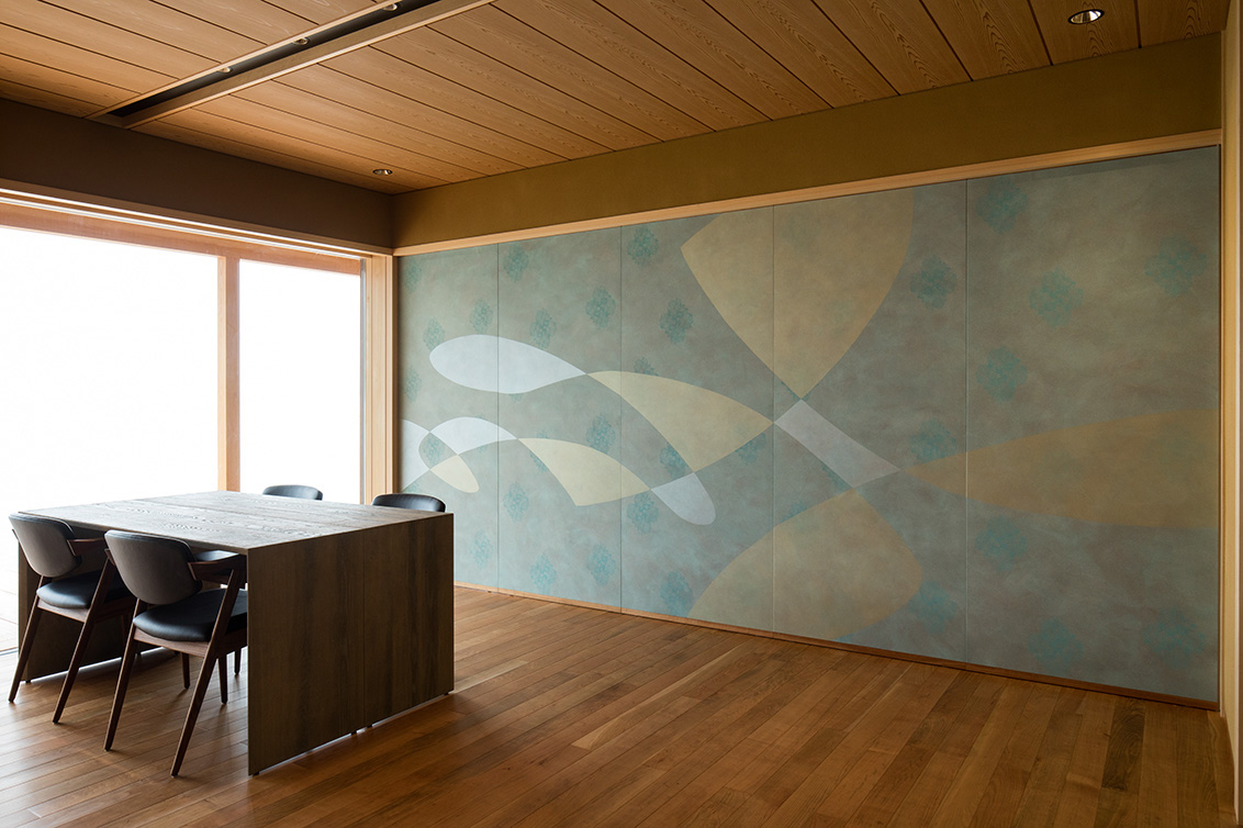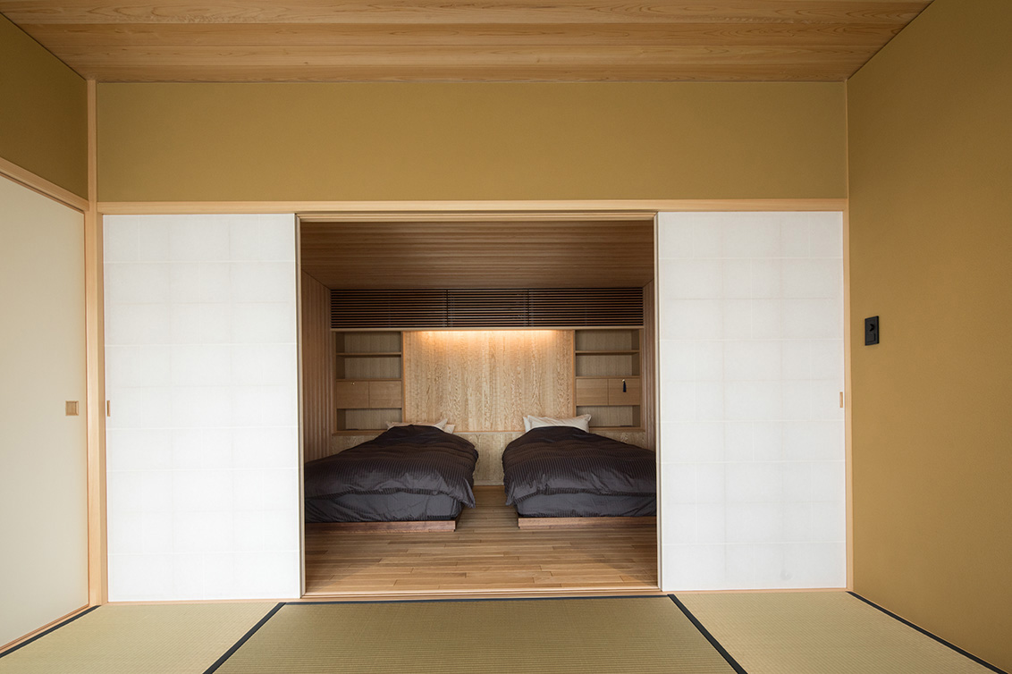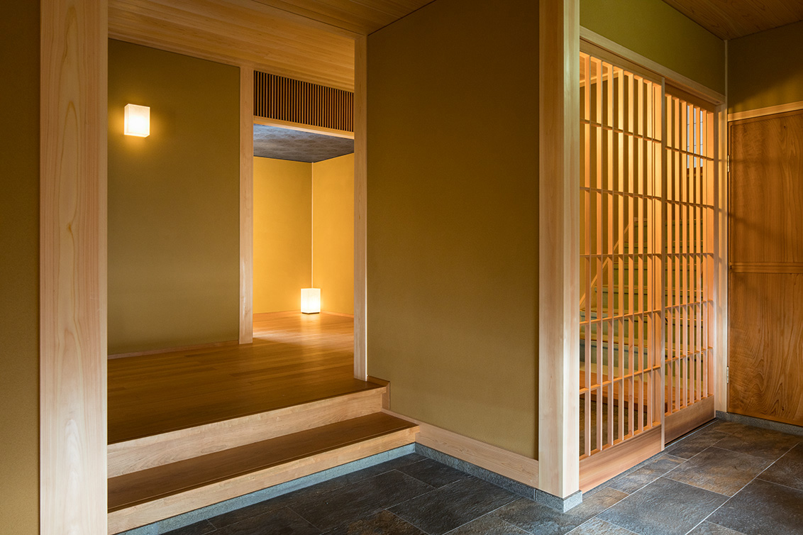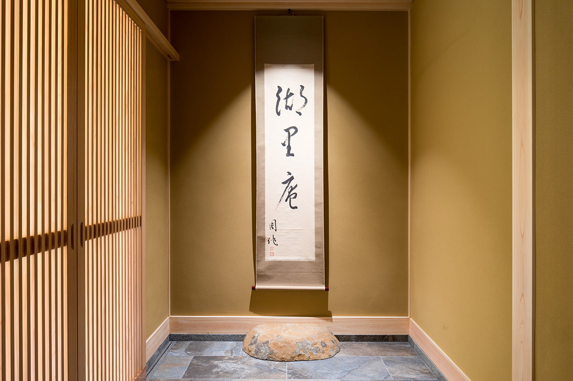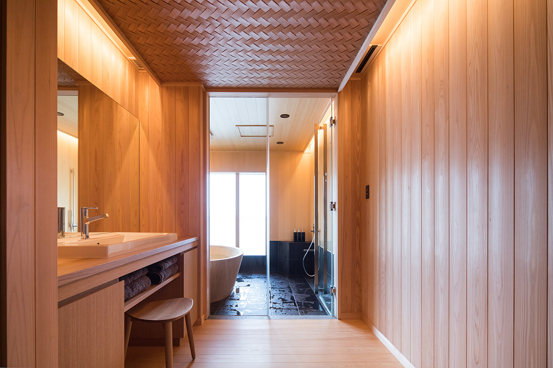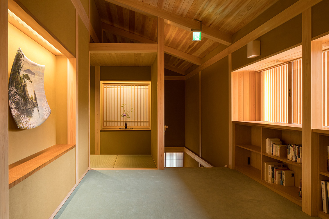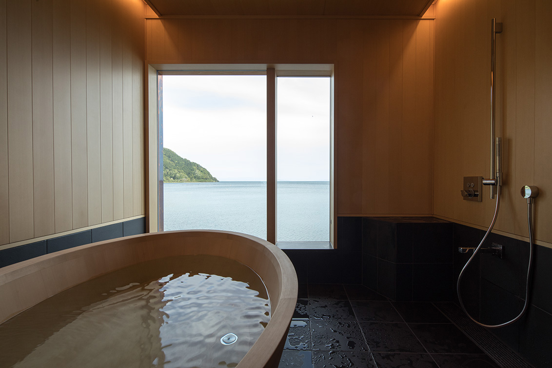 平成30年の台風で被災した滋賀県高島市琵琶湖岸に建つ「湖里庵」再建プロジェクトです。単なる再現ではなく、風や雪等の自然環境を考慮した建物形状の検討、琵琶湖の眺望を生かすため、大スパンのガラスとし、柱以外見えないよう工夫することで中外の一体化を目指しました。料亭と一日一客の旅館との両立、旧街道沿いの宿場町であったこの地域が持つ、路地空間やたまり・抜けの規則性や湖里庵らしさを取り入れる計画としました。